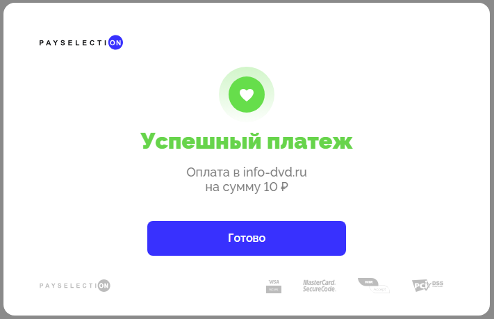 Затем Вы получите уведомление от сервиса, что платёж прошел: